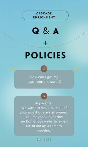 Auto-Pay is required to be set-up. By submitting your credit card, you consent to the initiation of payments on your behalf for services by Cascade Enrichment. Your information will be saved securely on file by our payment processor for future transactions on your account.